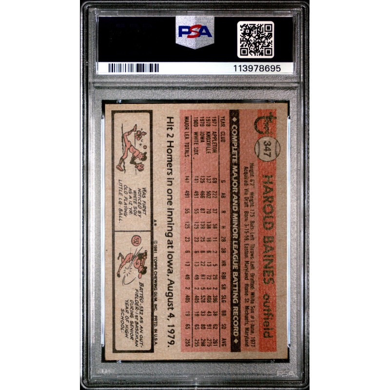 1981 Topps Harold Baines rookie card. PSA 6 graded.