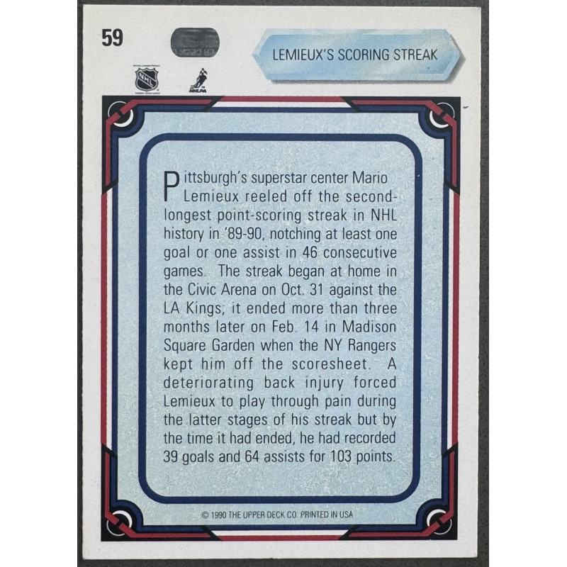 1990 Upper Deck Mario Lemieux Scoring Streak