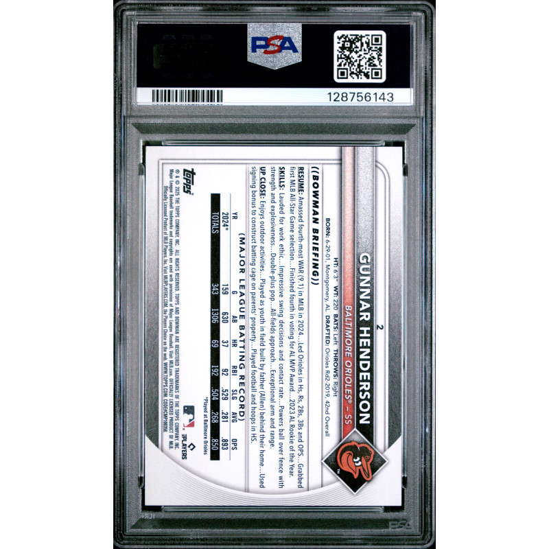 Gunnar Henderson 2025 Bowman #2 PSA 9 (Pop 2)